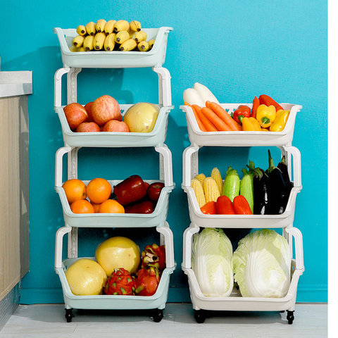 Mehr schicht iger Gemüse-Obst-Snack mit Rädern Spielzeug-Lager regal Kunststoff wagen für den Hausgebrauch Stehende lebensmittel echte Aufbewahrung lösung